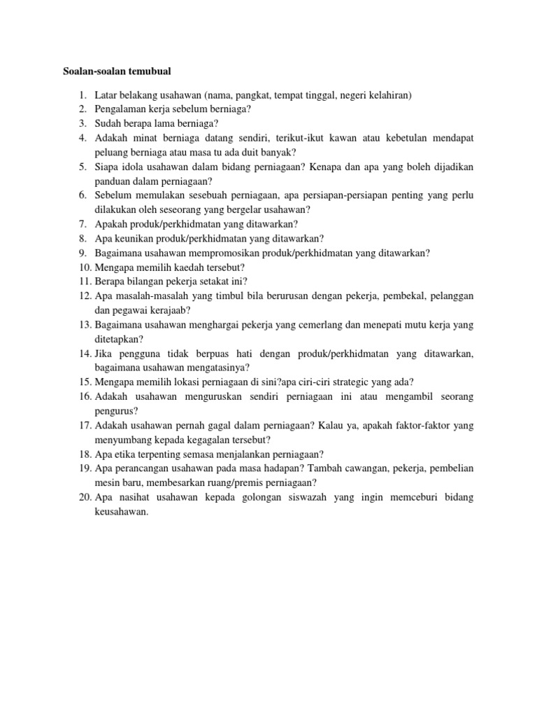 Contoh Soalan Kepada Peniaga